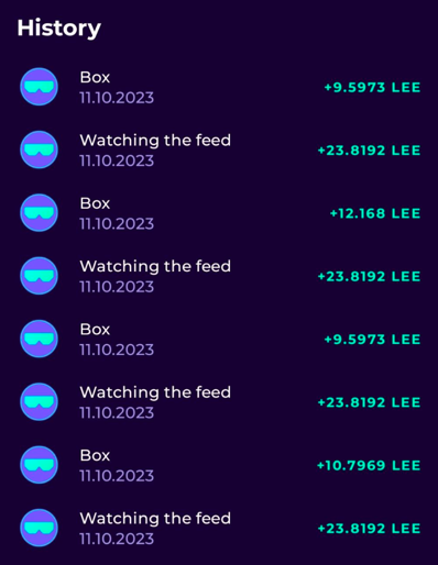 За просмотр ленты выпадают боксы📦, где бывают токены LEE ими как можно прокачать очки, так и обменять на реальные деньги.